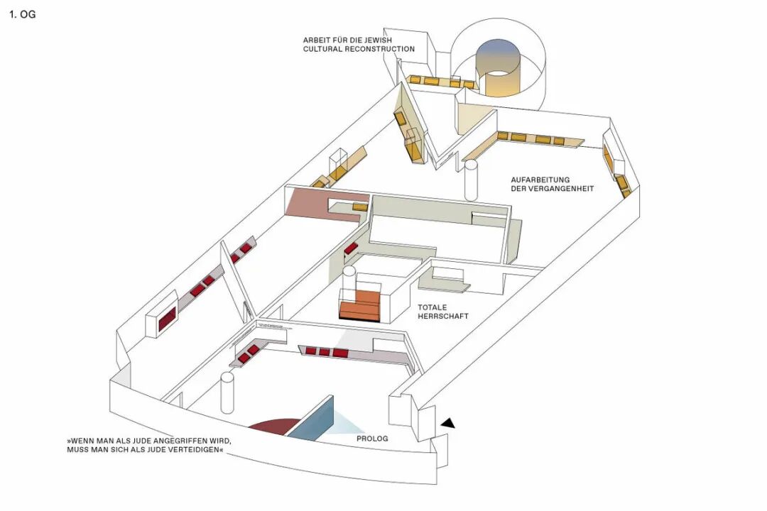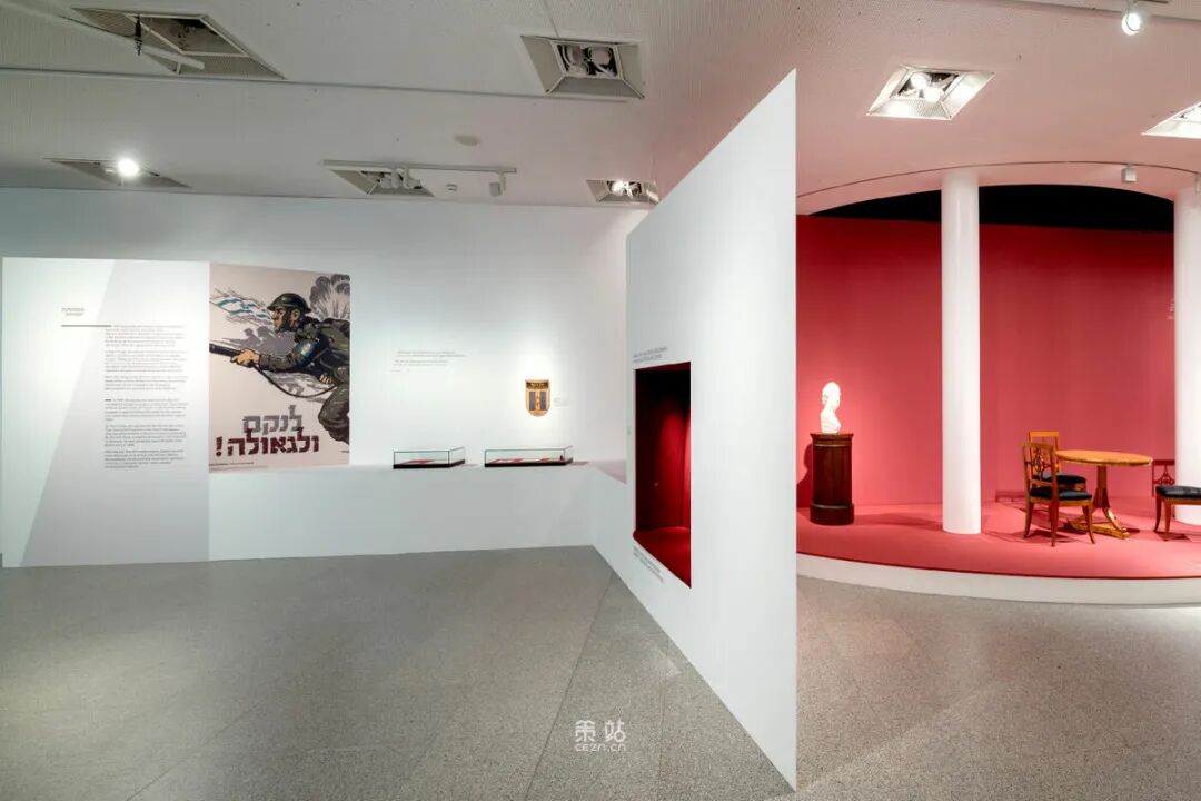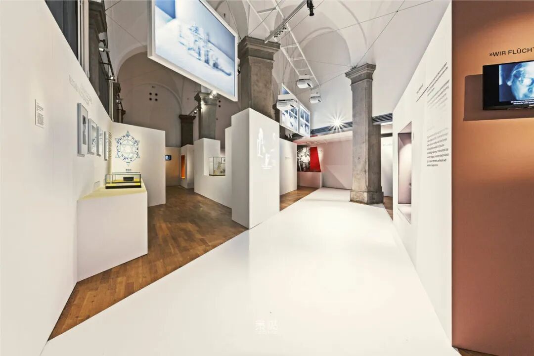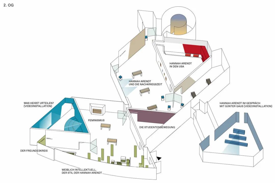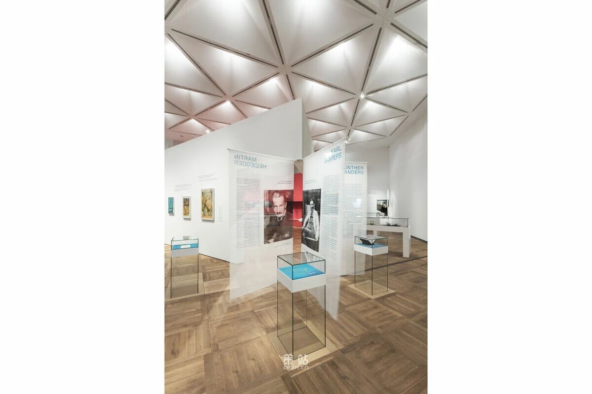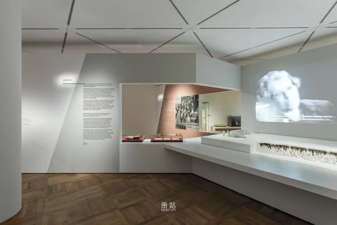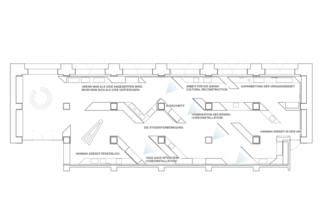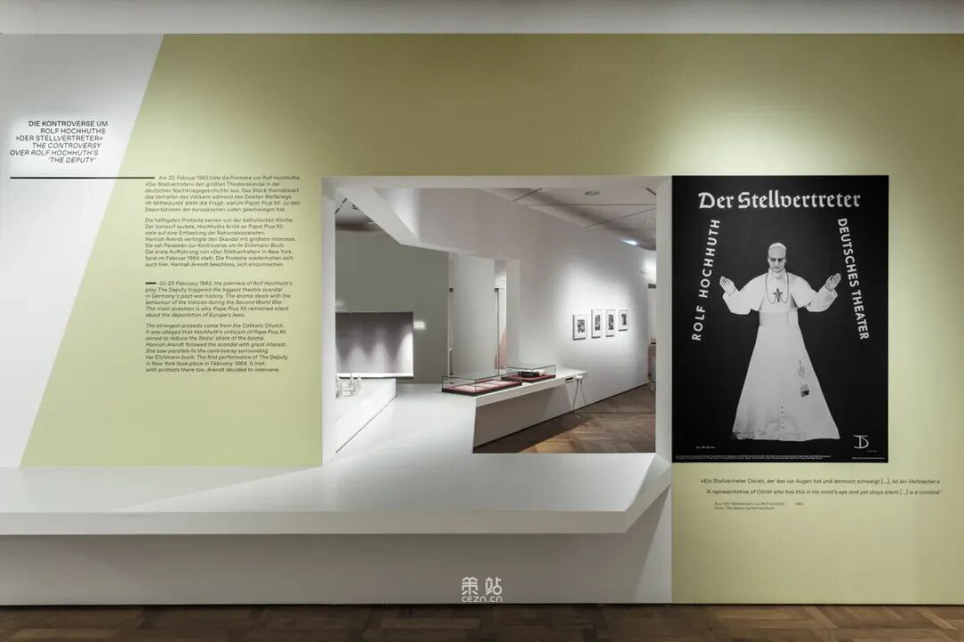Chezweitz 在两层楼上建造了一个空间结构,沿着策展人明确提出的主题组织参观。其结果是一个建成的、可步行的、三维的网络,开辟了令人兴奋的空间、多样化的参考和视角。图形和媒体的巧妙运用使得展览设计能够为主题的严肃性提供空间,同时允许对汉娜·阿伦特这个人的非常个人化的看法。