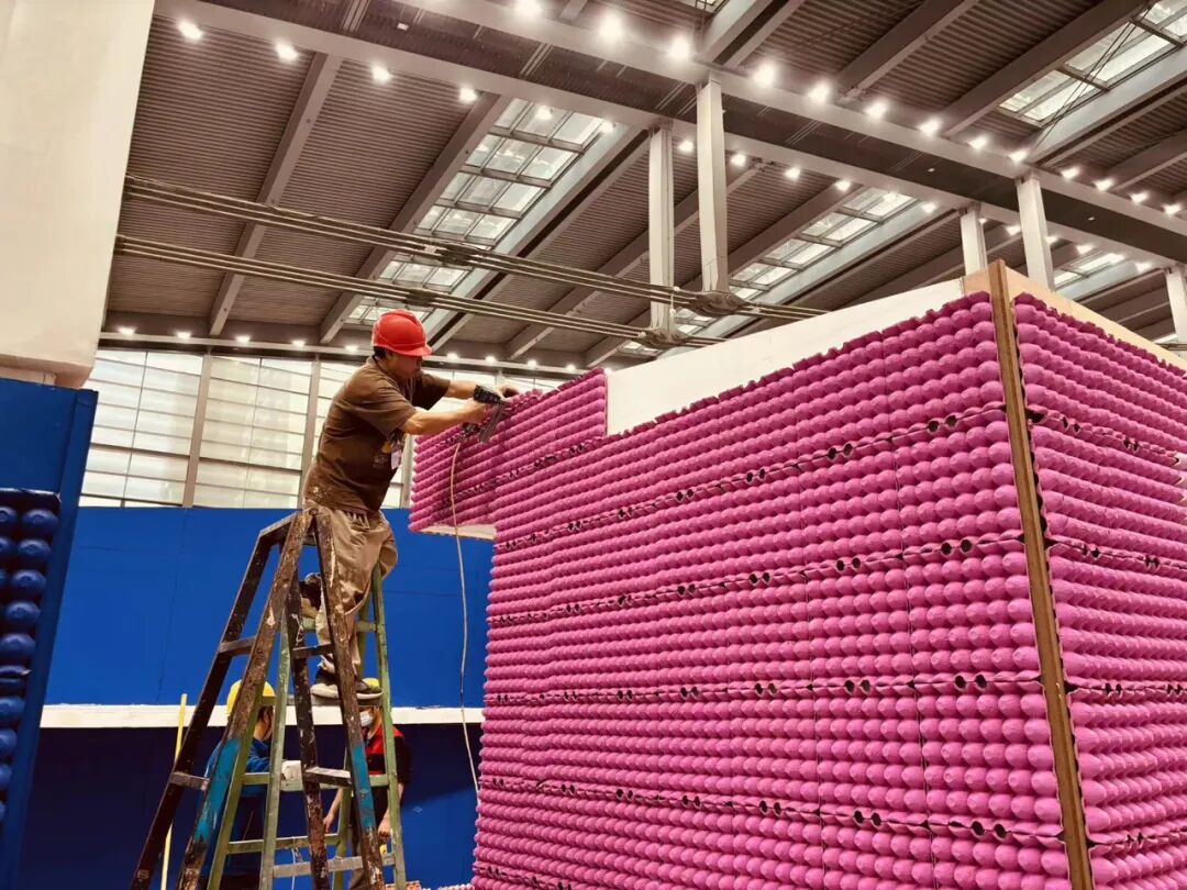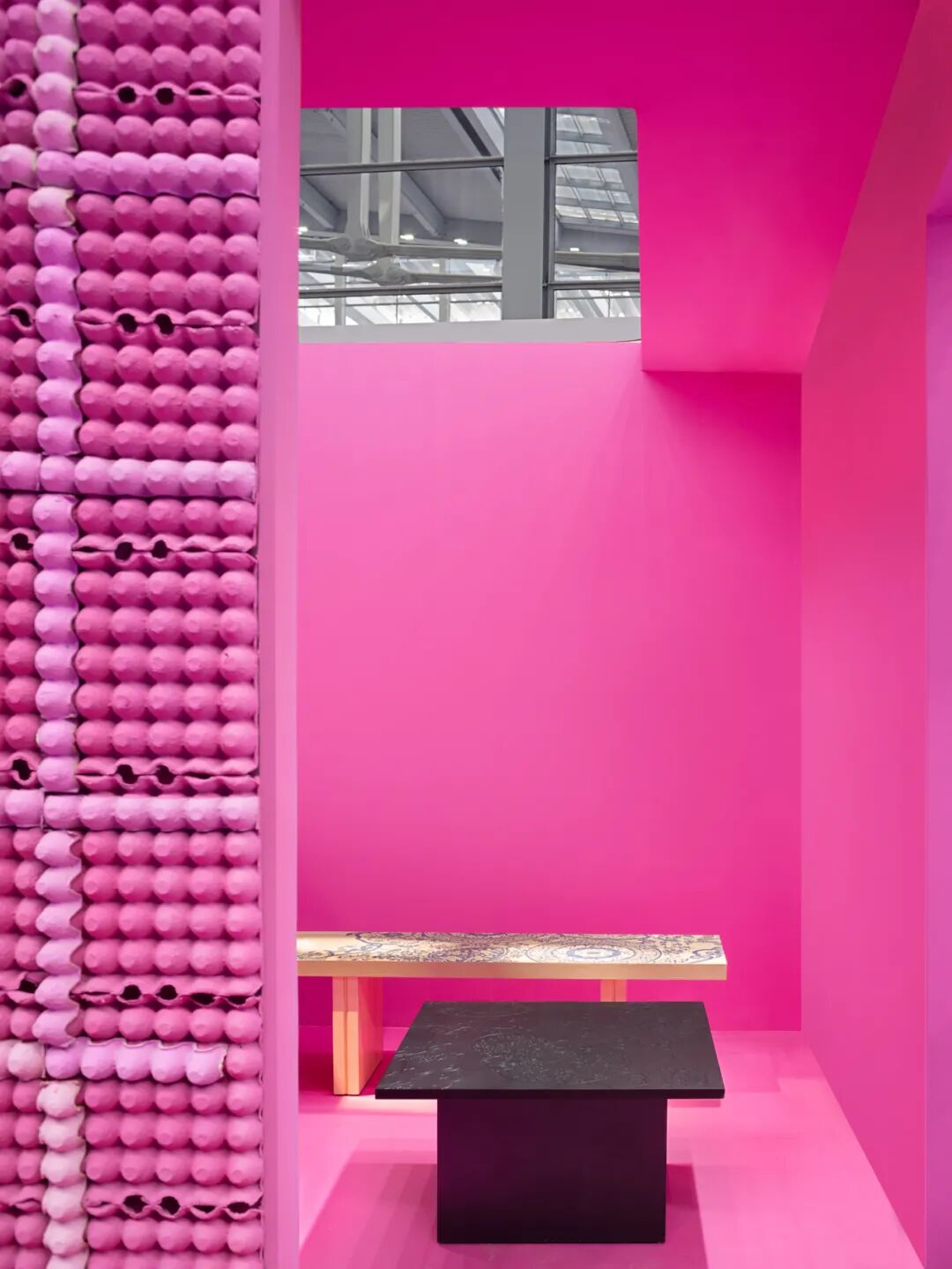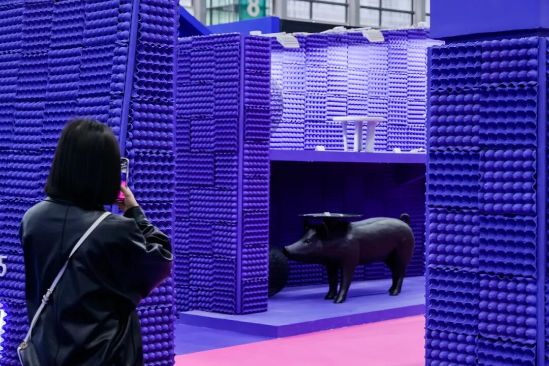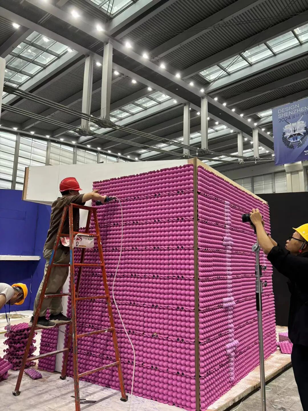 Due to the use of special non-standard decorative materials, the exhibition hall is also full of challenges during the landing stage. Mao Hua talked about the construction process and said, "We didn't explicitly tell the workers which part of the egg tray was positive and which part was negative. Instead, we allowed them to freely participate in the design during installation. This collaborative process was very interesting."