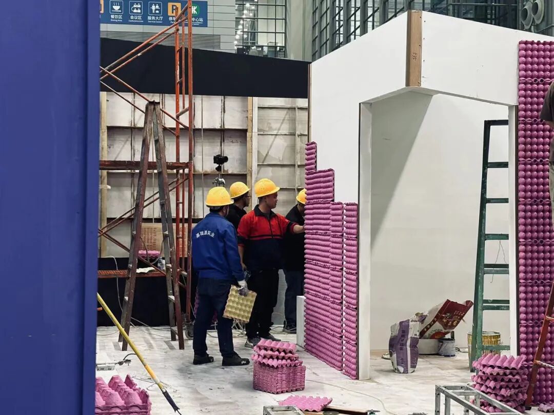 In the exhibition, the most discussed topic among visitors is not only the exquisite exhibits, but also the unique surface material used in the exhibition hall design - the most common paper egg tray in our daily lives.