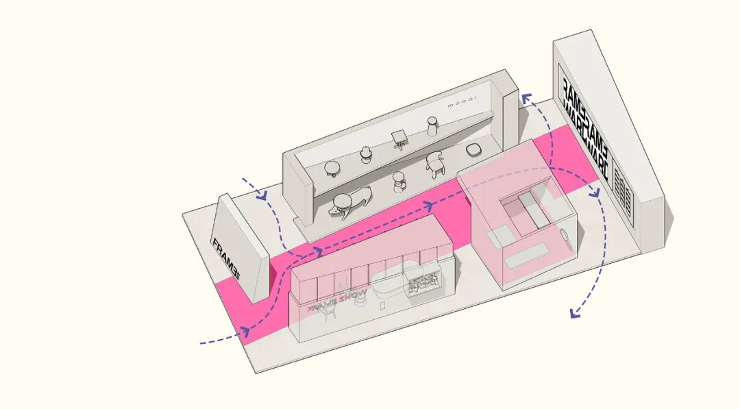 在这个独特的展览中,观众将有机会与家具进行一场别开生面的“对话”,一场“Show”,走上天桥的却是参观者,在展厅的设计中,异开设计团队试图将“展”与“观”的二元调换,以一道亮眼的粉红天桥,串联展厅,邀请观者踏入秀场。