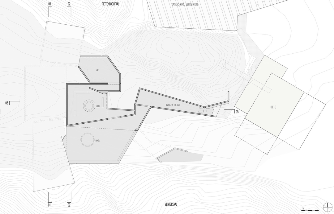 奥茨塔尔阿尔卑斯山脉的旅游吸引力得益于当代地标建筑所带来的影响力。这种影响力源于对环境的细致评估和富有责任感的回应方式。设计团队致力于打造一个能够充分适应场地的创新型建筑,通过跨学科的交流实现了高度创新的设计方案和施工方案。在设计007 Elements博物馆时,设计团队将自然环境巧妙地引入建筑内部,通过宽阔的窗面展示山谷的壮丽景色,同时营造出与电影《007:幽灵党》实际取景地相连的视觉体验。