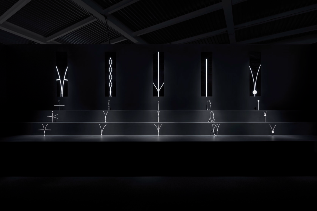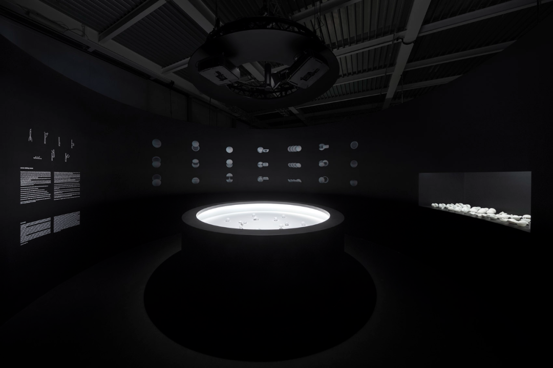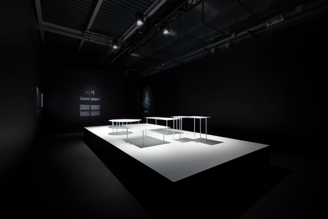 展示环境以黑色为背景,营造出一种沉静而专注的氛围。展品大多采用白色设计,借助追光灯的照射,进一步突显每件作品的独特特点和细节。这样的对比不仅使展品在视觉上更加醒目,也增强了观众对每件作品的关注和欣赏,体现了Nendo设计的精妙之处。