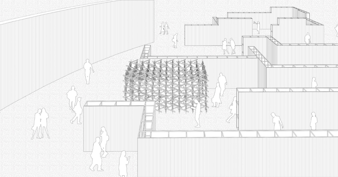 MAT Super Architecture Firm has created a spatial installation that is 6 meters long, 3 meters wide, and 3 meters high, based on the "Colorful Tower Huanmen" in the Song painting "Along the River during the Qingming Festival". In this painting, the "Colorful Tower Huanmen" appears at the entrance of a tavern, usually a two-story gate tower tied with bamboo, symbolizing the image of a "castle in the air" and becoming a symbol of a restaurant.