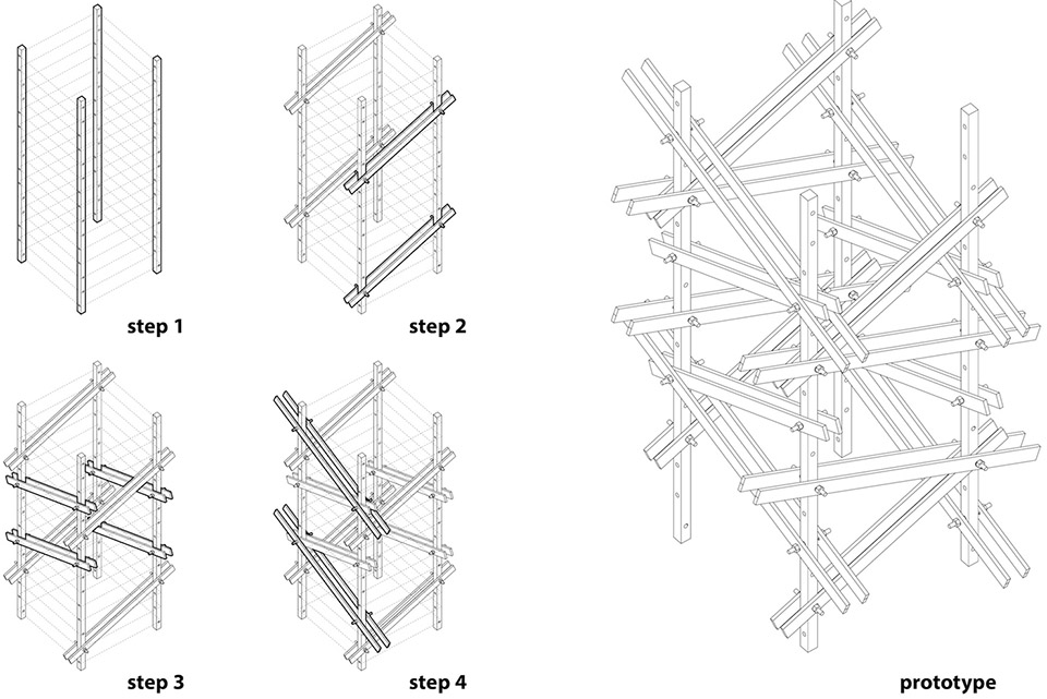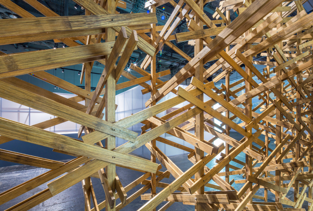 在实施过程中,他们在工厂将竹钢构件组装好,然后在展览现场进行纵向连接和斜撑连接,既提高了精确度,又节省了现场作业时间。