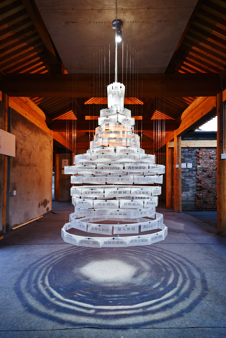 The concept of alleyways as "urban living rooms" was proposed by Huan Xin Space Design Firm. They took lighting as the starting point and combined the unique names of alleys in old Beijing into a white tower image installation, aiming to stimulate people's thinking about improving the lighting and comfort of alleys.