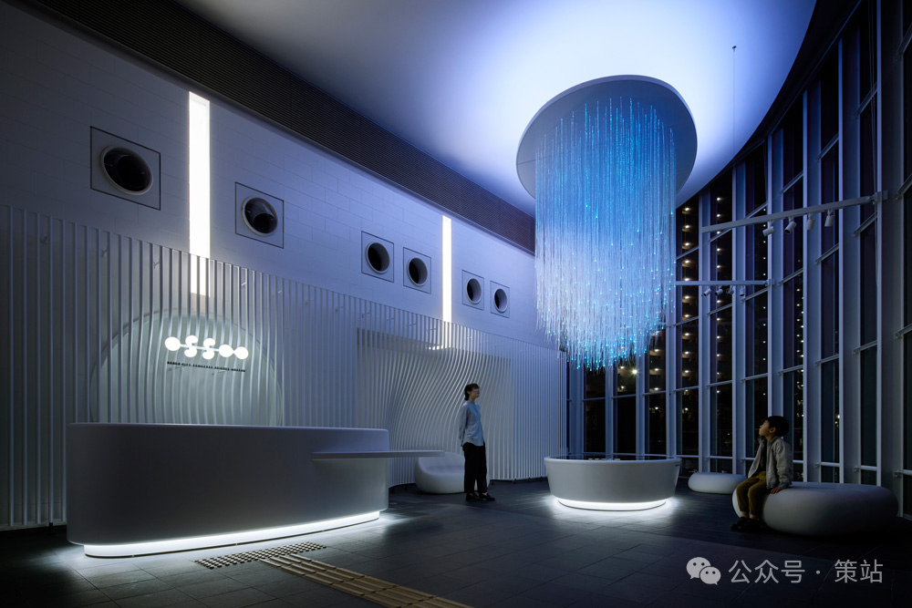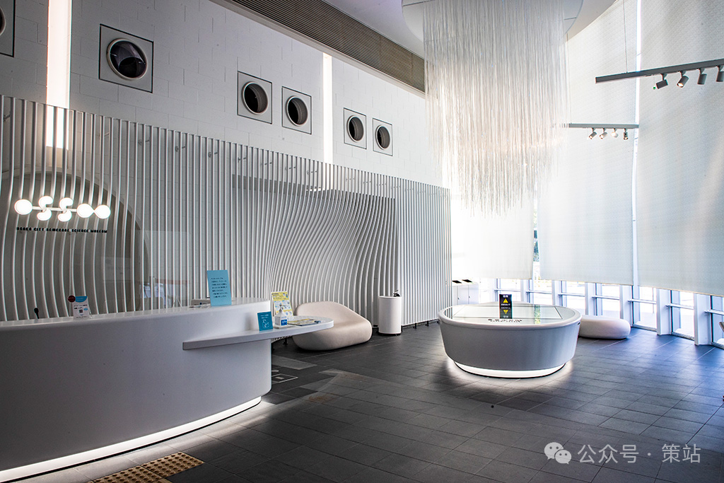 Entrance Hall: A symbolic object inspired by pure water welcomes visitors and emphasizes the intrinsic value of clean wastewater. The entrance hall with abundant natural light and bright atmosphere is equipped with a "text fountain", allowing visitors to see various impressions inside the building in real time. The futuristic atmosphere shared by the entire museum starts from this entrance hall, and you will feel excited before entering the exhibition room.