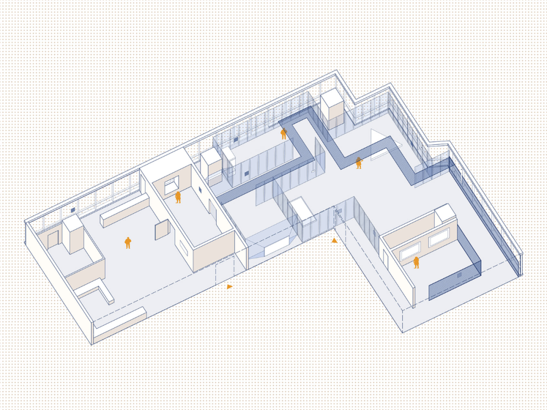 The Taikang Boutique Collection Exhibition is located in a newly renovated office space in a high-rise office building in the center of Shenzhen, with an exhibition period of two months. We will incorporate this exhibition into the current transition state of the previous renovation after demolition. Like a dream that will eventually wake up, this temporary exhibition event is folded within the time and space of the transition between two offices. We attempt to explore the relationship between individual emotions and the city from the perspective of exhibition design, in limited time and space, together with Taikang Space.