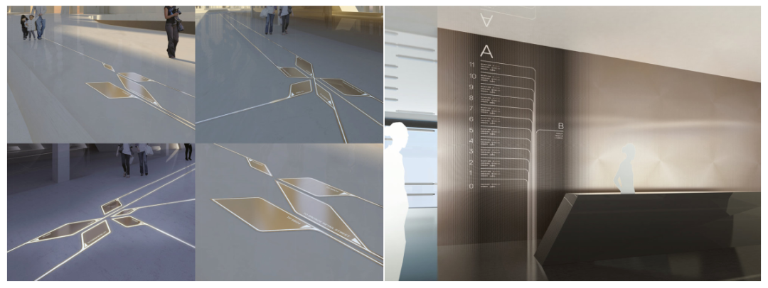 入口门厅作为进入展示厅第一眼的视觉空间,采用以无棱角、曲线的设计形式,结合了现代高科技的手段,赋予我们更大的想象力空间。