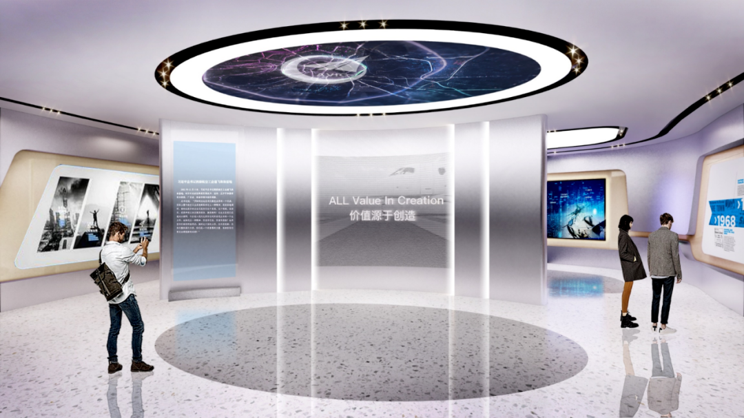 The entrance hall, as the first visual space when entering the exhibition hall, adopts the design form of no edges and corners and curves, combined with modern high-tech means, giving us greater space for imagination.