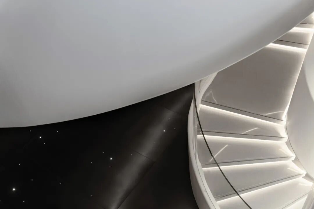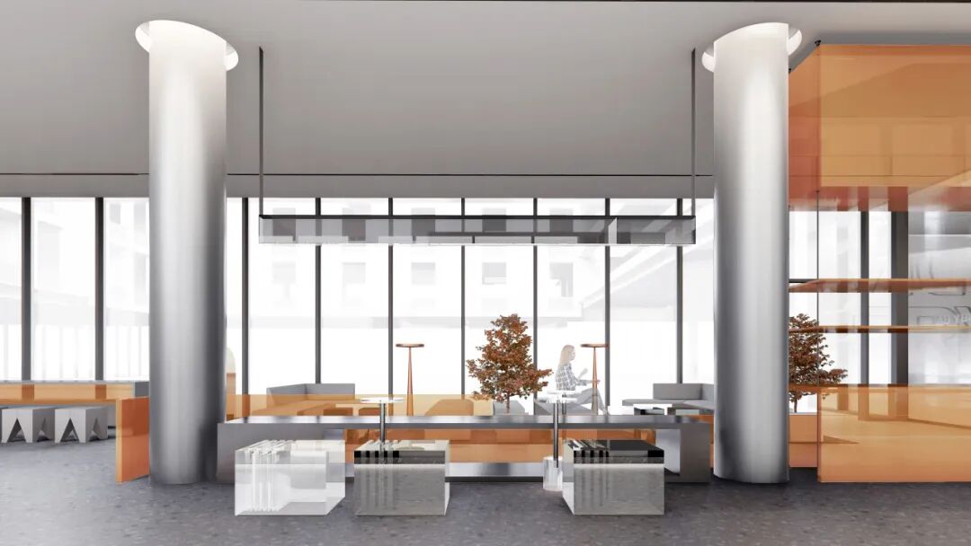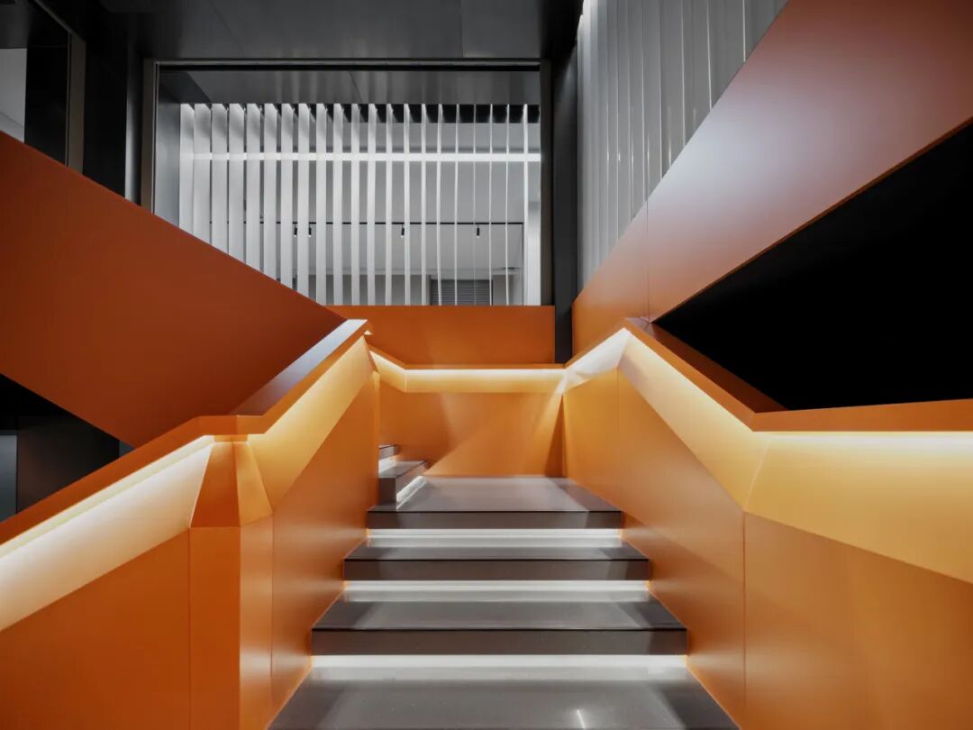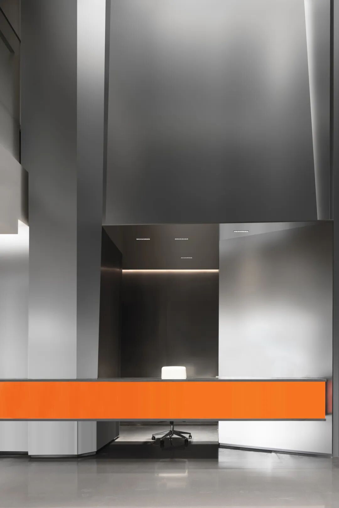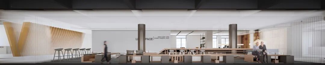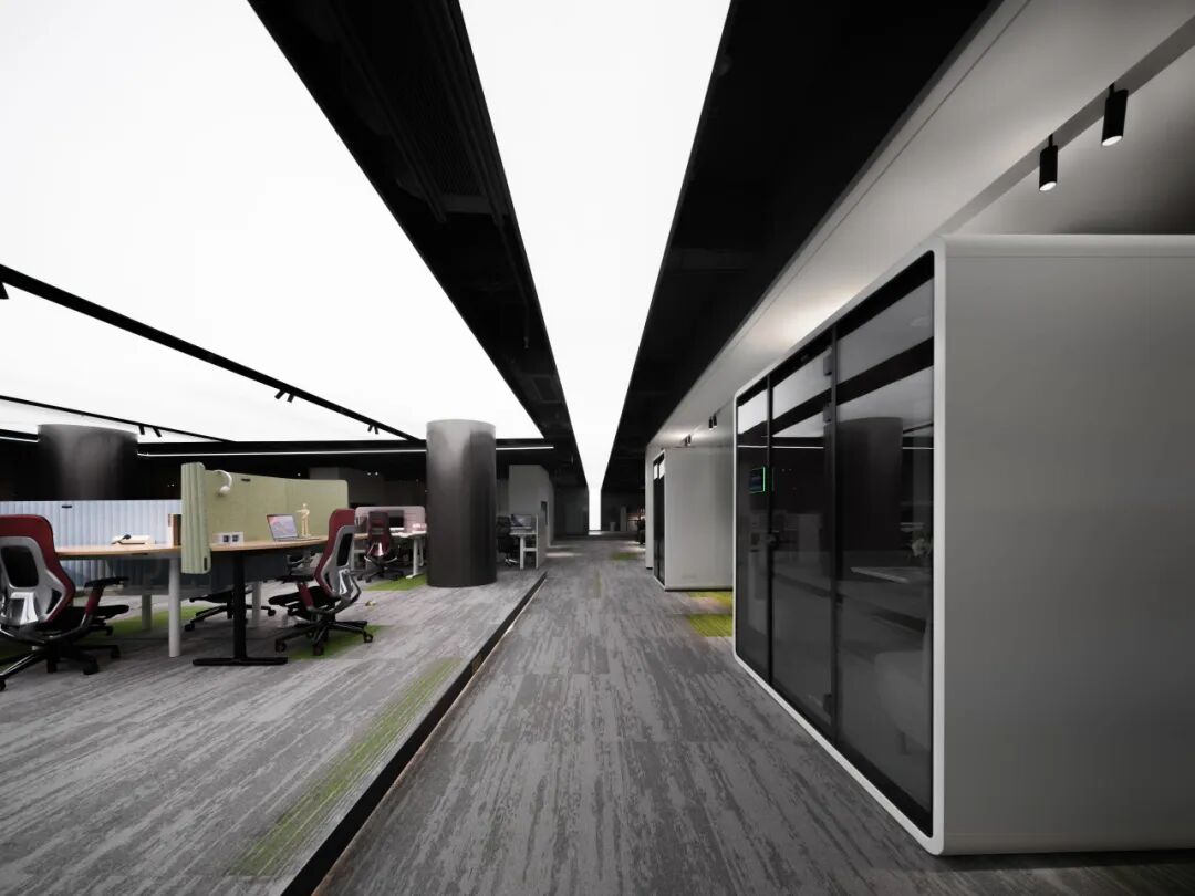在空中接待大堂,我们创造了“时空站台,探索之旅”的主题体验,将空间打造成充满未来感的品牌展示区。这里,设计与科技的结合不仅传达了强烈的品牌感和主题感,也为访客开启了一场关于探索与创享的旅程。通过创新的设计手法,空间仿佛成为时空穿梭的平台,鼓励访客以新的视角探索百利的产品和理念,预见办公空间的未来可能性。