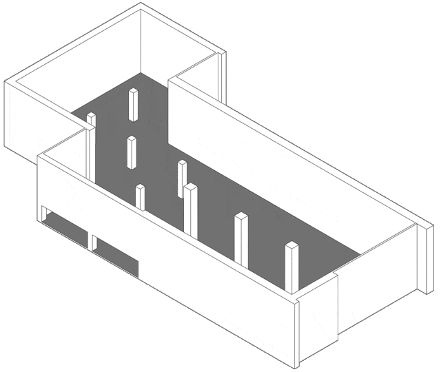 展览场地位于西安美术馆二楼3号展厅,总面积约1270平方米。展厅前段空间低矮缓和,而中后段则宽敞,充满力量感。整个展场共有八根承重柱,同时设有消防卷帘门、其他消防设施、电源插座、电源开关、内部工作间门洞以及双开门等。原始墙面为白色,地面铺设灰色水磨石。