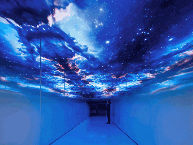 The gradient mirror walls on both sides of the channel horizontally expand the space at the top, making people feel as if they are in the vast universe.