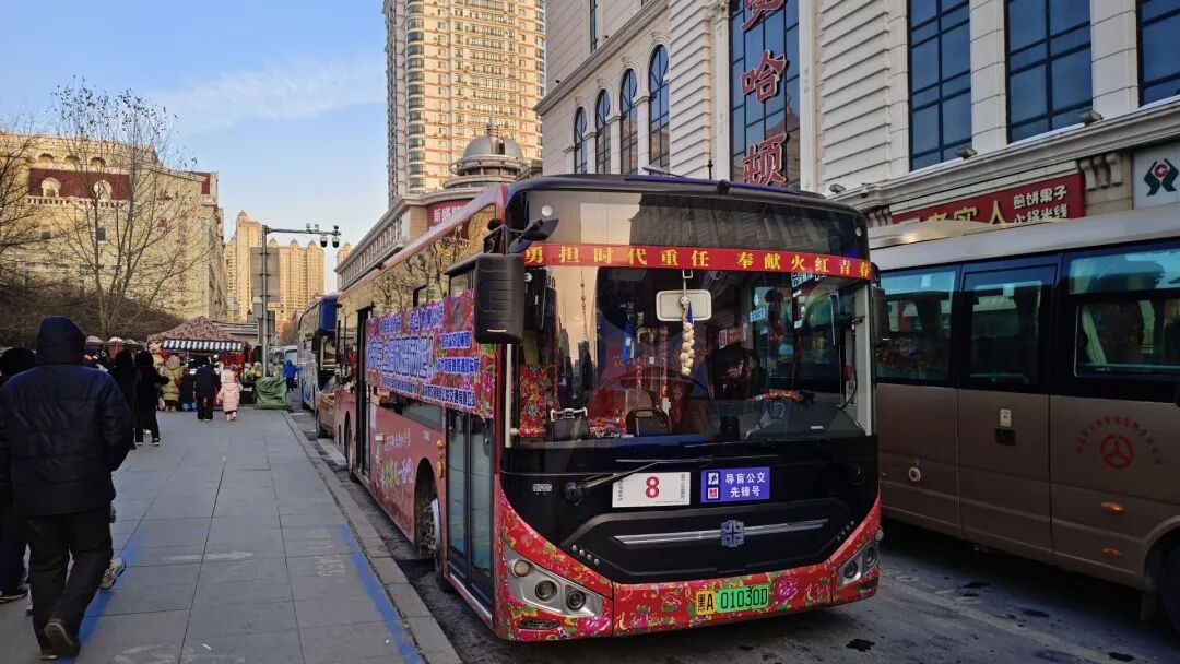 (图片:哈尔滨“冰城”主题巴士|图片来源:网络公开)
