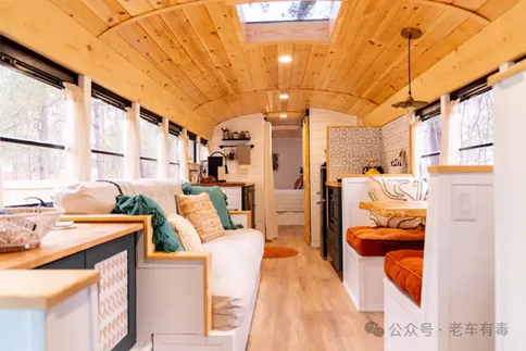 在废旧巴士的改造案例中,复古巴士的创新改造是“房车”一族的智慧结晶。废旧巴士通过内部改造成具有怀旧风格的房车内容,内部配备了舒适的床铺、厨房设施、卫生间等,外部则进行了复古风格的装饰,如涂上经典的巴士颜色、绘制复古图案等,同时配备便携式桌椅、烤炉等野营物品,不仅能够成为私人小院的休闲场所,更能成为各大休闲景区的新业态,跟上“露营经济”东风,为顾客提供别致的沉浸式公路休闲体验。