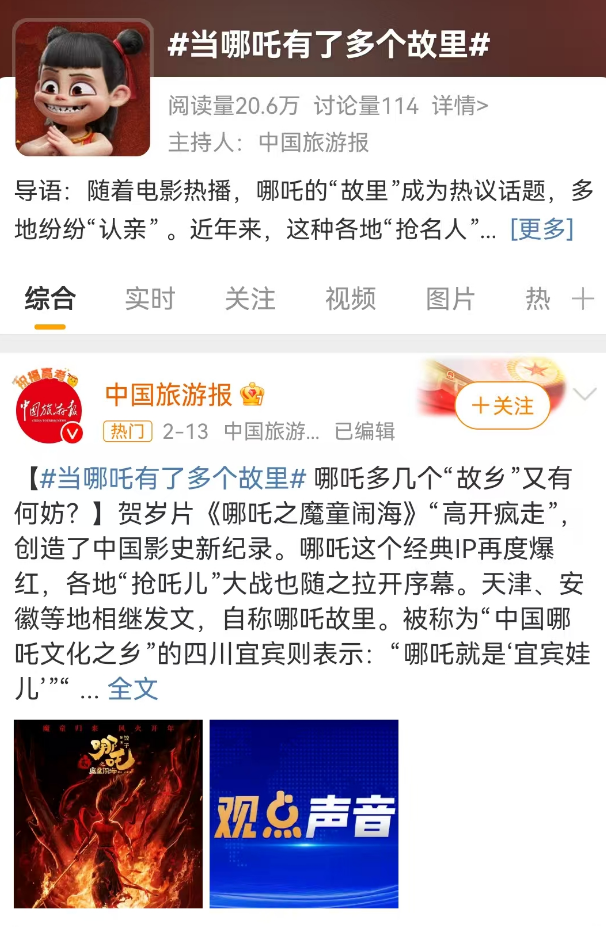 (图片:微博话题#当哪吒有了多个故里#|来源:微博截图)