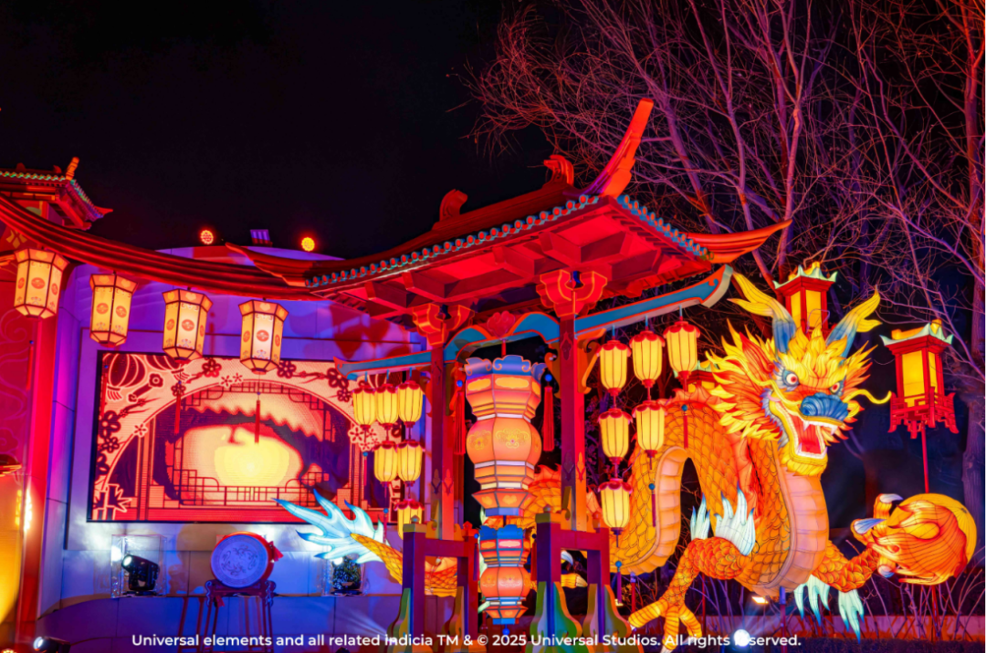 北京环球度假区“环球中国年”主题活动将于2025年1月18日至2月23日举行,为游客带来一场别样的“新春欢乐盛宴”。2025年迎来蛇年新春,《功夫熊猫》电影角色五侠之一的灵蛇是北京环球度假区蛇年新春的主题形象,在好莱坞大道静候游客到访。“环球中国年新春特别演出-年来啦!”演出再度回归,这是北京环球度假区中中国元素运用最多的演出,《神偷奶爸》《马达加斯加》《功夫熊猫》等电影中的明星角色与数十位演员联袂,演绎在新年之夜合力驱赶“能偷走人们的时间和青春”的年兽的故事,舞龙、舞狮、水袖、中国鼓乐、中国杂技、中国建筑等元素融入其中,为游客带来欢乐新春时刻。