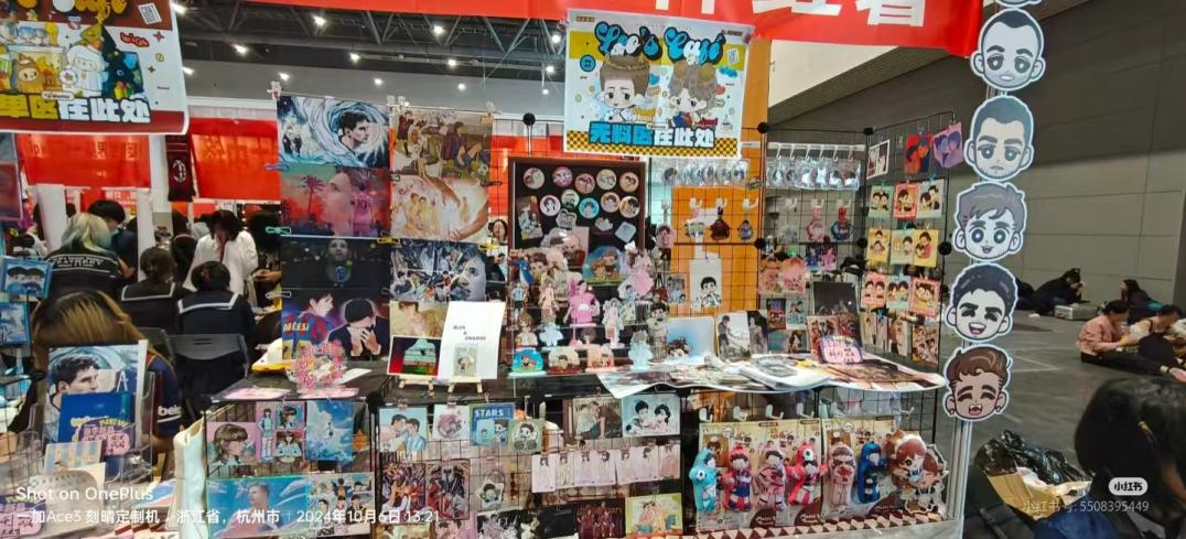 (图片:梅西等足球明星原创动漫作品摊位|来源:网络公开)