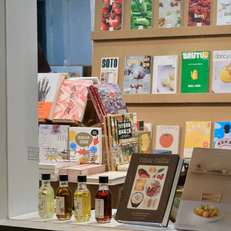 在温州市中心老城区双井坊,有一家坐落于双井头菜场的美食书店。书店主理人Pan小月和“南食召”,一个是美食博主、下厨房APP前主编,一个是知名食品品牌的创始人。“盘菜生”的名字来源于温州一道家喻户晓的凉菜,由温州当地特有的一种根茎类蔬菜“盘菜”制作而成,其切片呈现出似断非断、如连不连的独特形态,恰似被翻开的书页,生动而形象展现书店与当地饮食文化的结合。