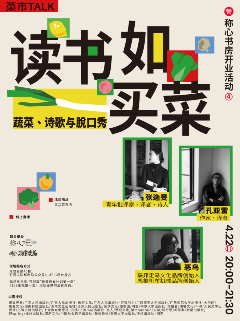 开业后,称心书房还举行了一系列活动,将阅读元素注入菜市场场景中,例如以书换“蔬”或者以“蔬”换书活动、“菜市TALK”。在“菜市TALK”活动中,书店邀请到知名作家孔亚雷、译者张逸旻,以及“恶鸟”来对谈“读书如买菜:蔬菜、诗歌与脱口秀”。未来,称心书房还将推出“一日主理人 全民来参与”的主题活动,邀请社会各界人士深度参与到书房的建设与日常运营中,协力将书店打造独具魅力的城市共享文化空间。