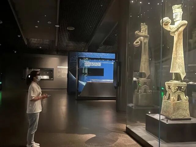 (图片:市民戴着MR眼镜观赏三星堆 | 来源:封面新闻)