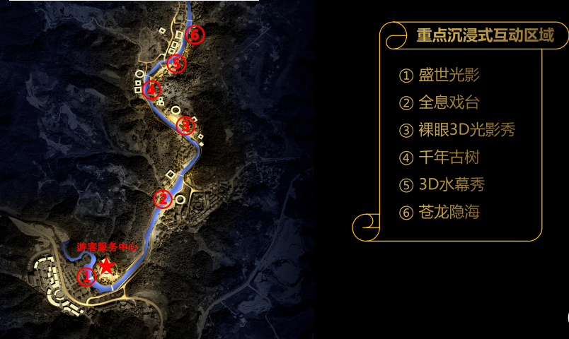 演艺是行浸式夜游不可或缺的内容,也是作为核心线将散落在行浸动线上的互动观赏点位串联在一起的关键。行浸式夜游打造方要利用改编好的古城镇故事,在行浸动线上根据故事情节,在不同的区域和时间段,移步换景,设计不同元素的情景表演,让观众沉浸在故事感满满的场景当中,将自己融入故事情节,参与到演艺当中。