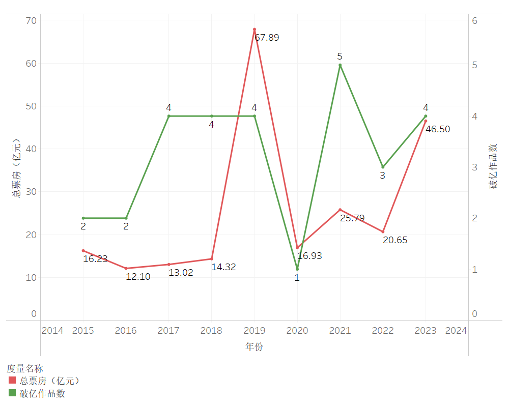 (图片:2015-2023国内票房过亿动画电影数量折线图|来源:网络公开)