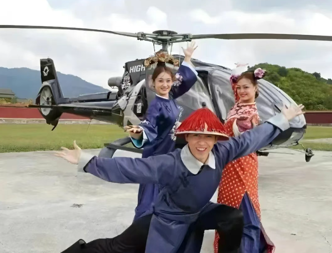 横店被誉为“中国好莱坞”,拥有秦王宫、清明上河图、明清宫苑等30多个大型实景拍摄景点。借助国内首个镇级通用机场,横店开展了固定翼、直升机、热气球等“空中看横店”项目以及“直升机+旅游”项目,3000米、4000米高空跳伞项目,横店—德清短途运输低空游览项目,横店—上海、横店—杭州影视旅游专线。2024年启动无人机万人培训计划项目,包括民航CAAC操作员培训、退役军人无人机技能培训,以及3000米、4000米单人跳伞考证培训。推出具有横店特色的“一站式、一票制”“干支通,全网联”等影视旅游航线网络和产品体系,并通过产品整合,横店实现了游客数量的跨越式发展,从年均2000万人次增长到5000万人次。