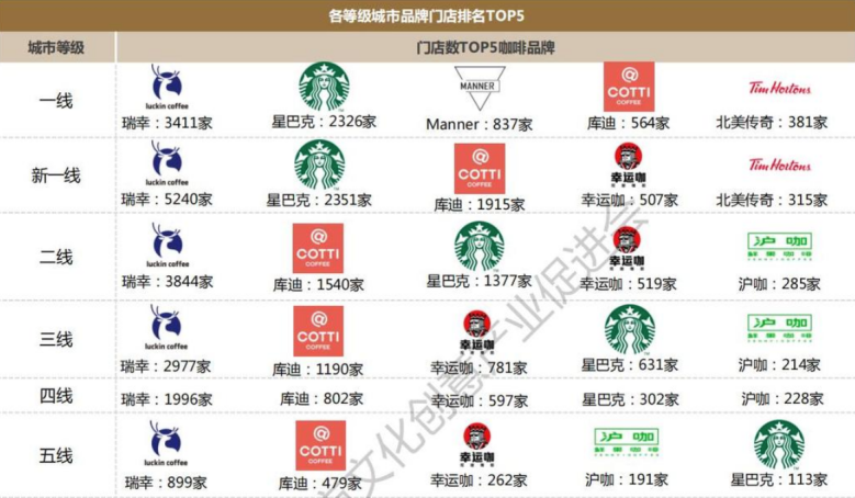 (图片:各等级城市品牌门店排名|来源:《2024中国城市咖啡发展报告》)