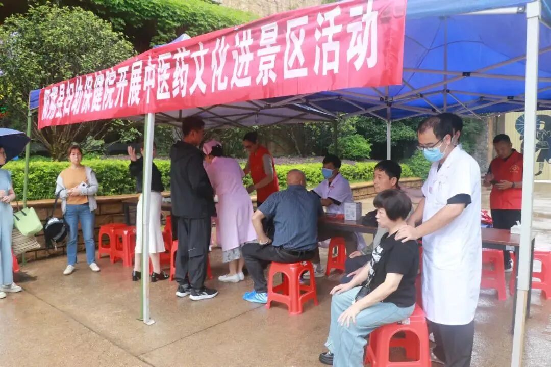 各景区结合自身特点,提供多样化中医药服务:千古情景区内,阳朔县妇幼保健院设立义诊台,提供针灸推拿、贴敷艾灸等服务,赠送定制化养生香囊,以“一人一方”守护游客健康;印象刘三姐景区中,阳朔县人民医院为工作人员开展急救培训与正骨、脉诊服务,助力打造“健康型”旅游服务队伍;世外桃源景区里,白沙镇中心卫生院依托“体质辨识进景区”项目,为游客提供亚健康调理方案并推广针灸推拿等适宜技术。