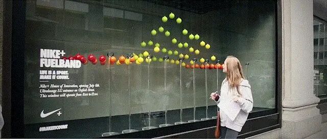 (图片:Selfridges 沿街的 Nike 橱窗,利用体感设备跟人互动|来源:网络公开)