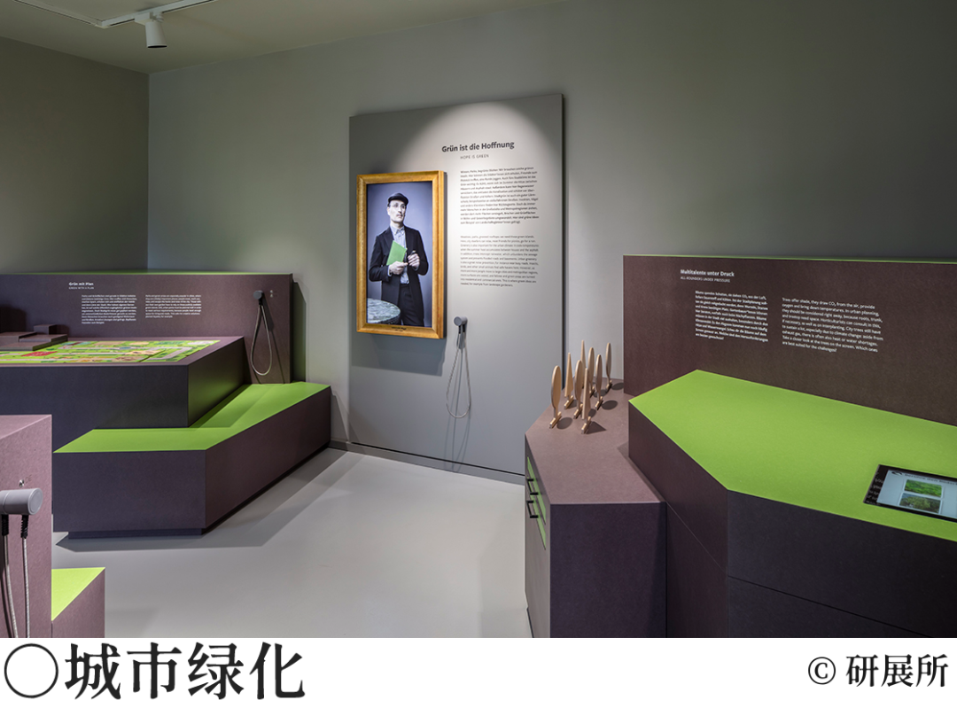 采用“历史-现代”对比布局,结合多媒体展示城市绿化技术,形成时空交叠的沉浸体验。
