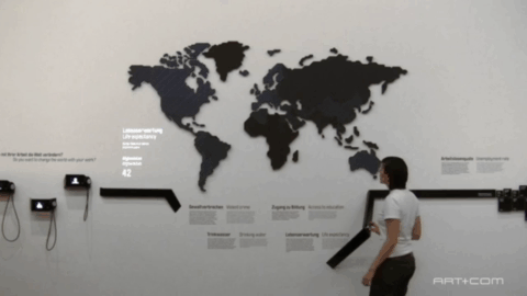 参观者依旧通过转动旋钮来更改不同的参数,从而检索世界各地导致失业率原因的各种数据。