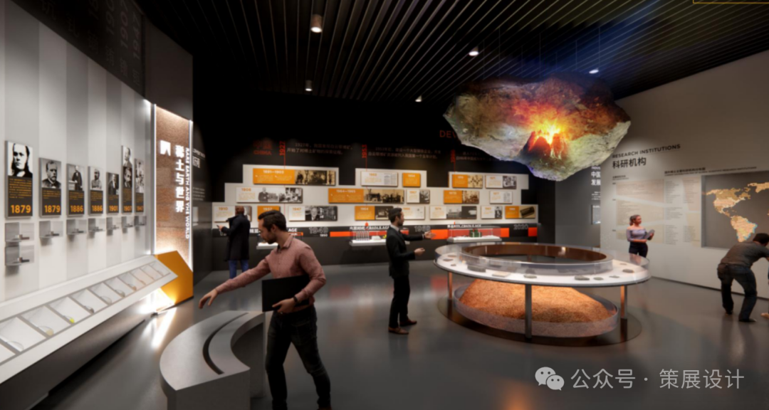 仿佛穿越了时空隧道,回到了稀土元素被发现的那一刻。这里通过生动的动画展示,将稀土之窗和稀土发现的故事娓娓道来。全球稀土的分布、含量、储备量、矿种信息等综述性短片在屏幕上滚动播放,让观众初识中国稀土大国的风采。在荣誉感的驱使下,人们不禁想要深入了解稀土的奥秘。于是,他们继续前行,在“一张图”的背后空间里,探寻稀土的发现历程、稀土元素的属性特性以及稀土矿石的样貌等更多信息。