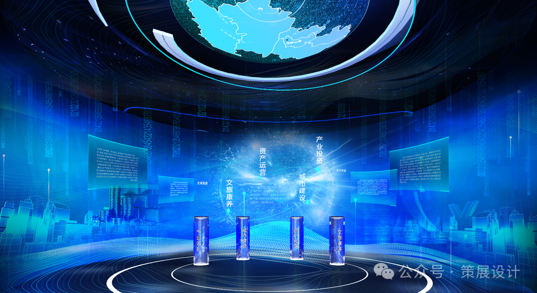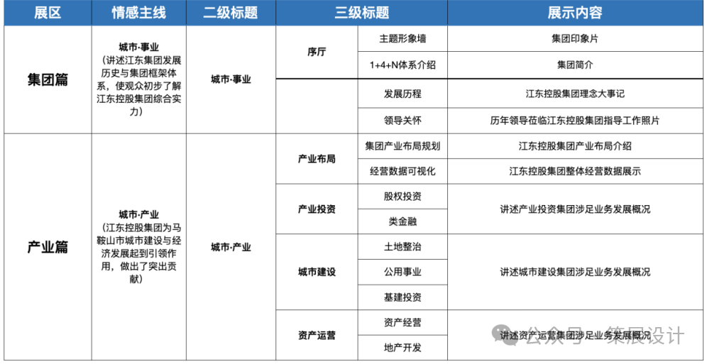 - 江东控股集团企业展馆设计:产业投资、资产运营、文旅康养与城市建设