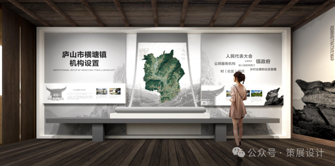 政区图展示了横塘镇在庐山市的地理位置,以及镇内各行政村、自然村的分布情况。通过这张图,参观者可以清晰地了解横塘镇的行政区划、交通网络、水系分布等基本信息,对小镇的地理环境有一个直观的认识。