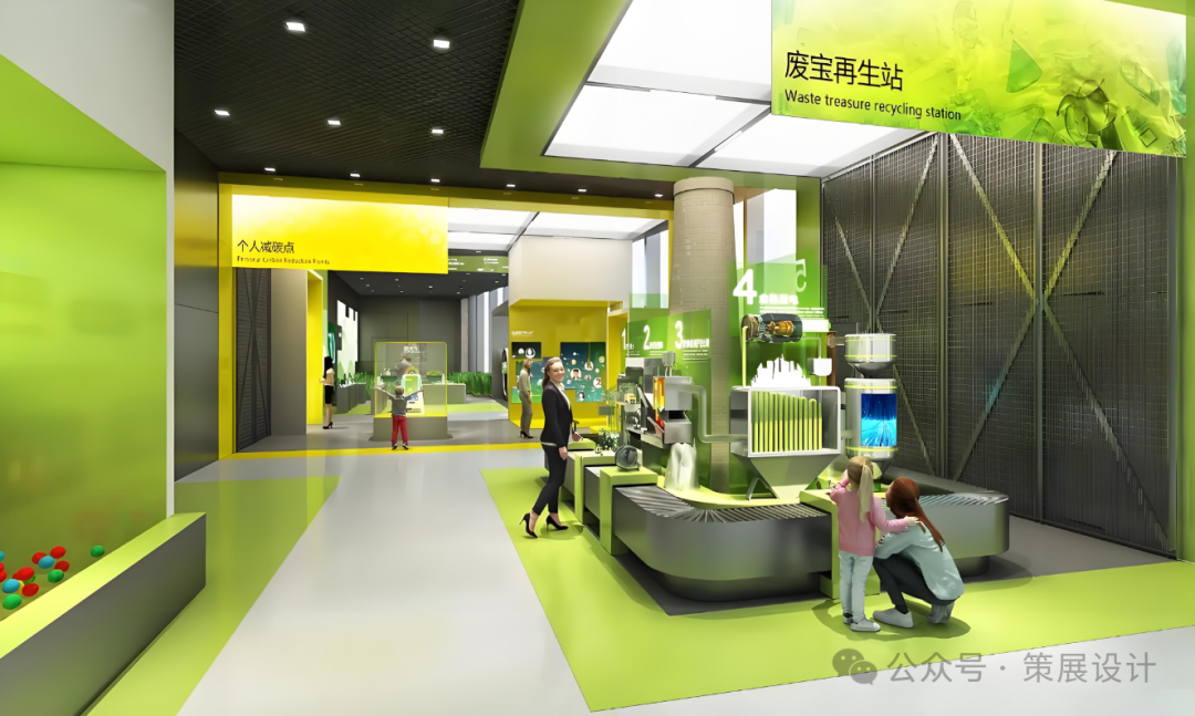 “平衡钟”动态装置通过砝码增减模拟碳排放与环保的博弈关系,家庭碳足迹计算系统可生成个性化减排方案;