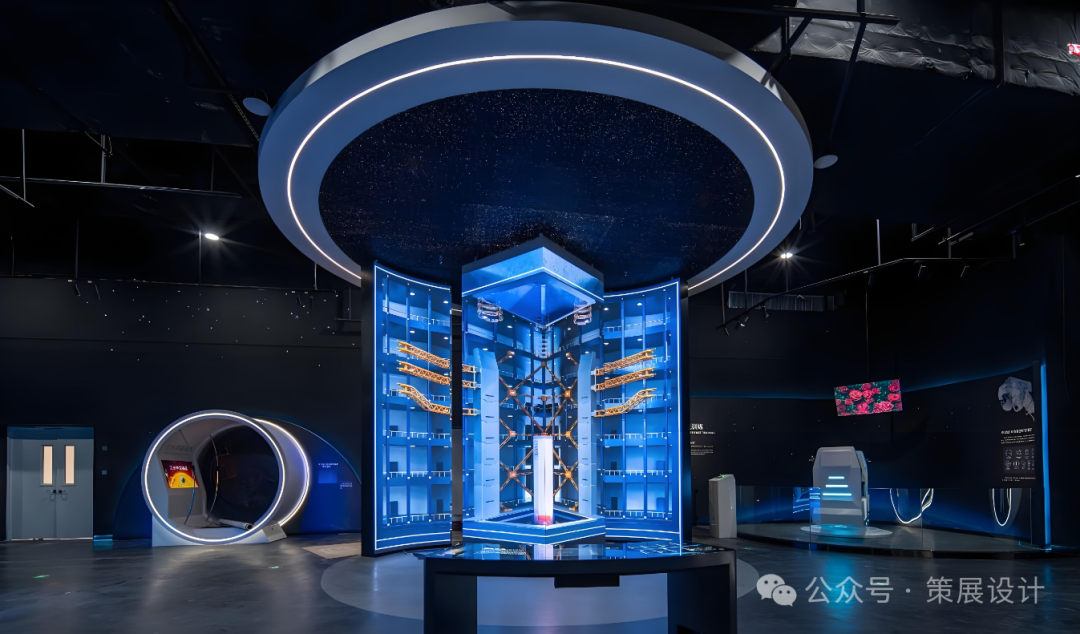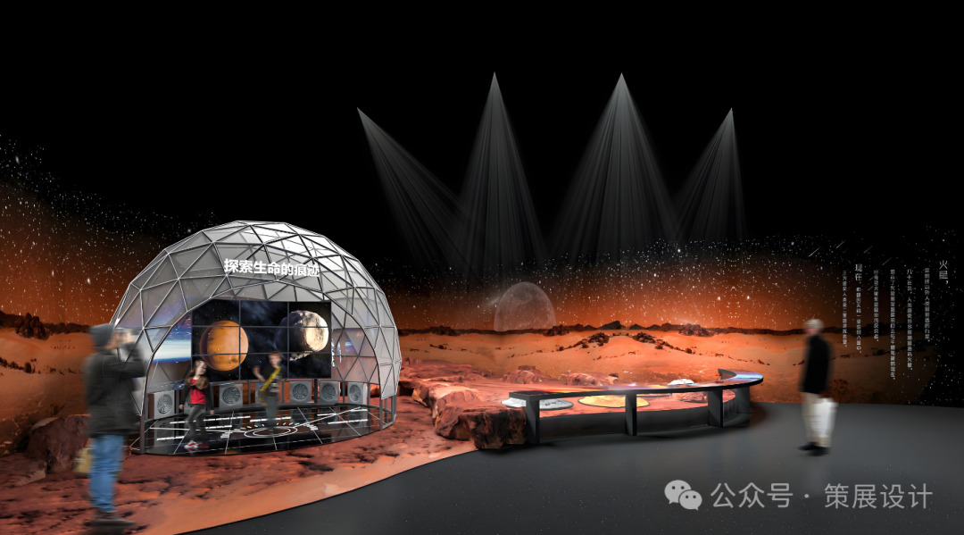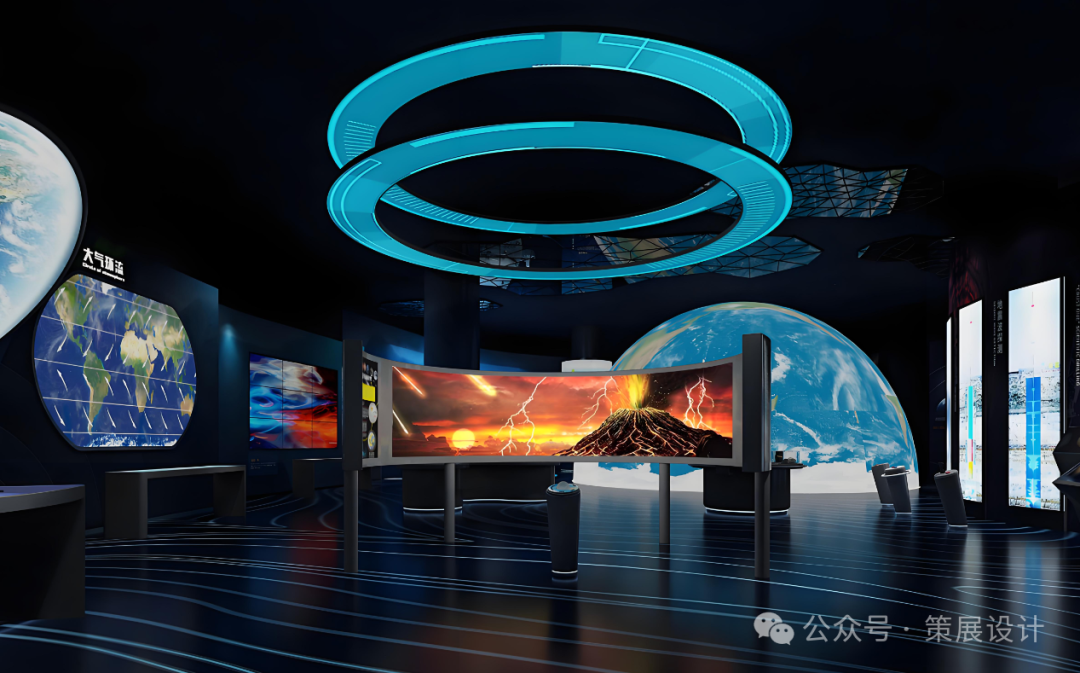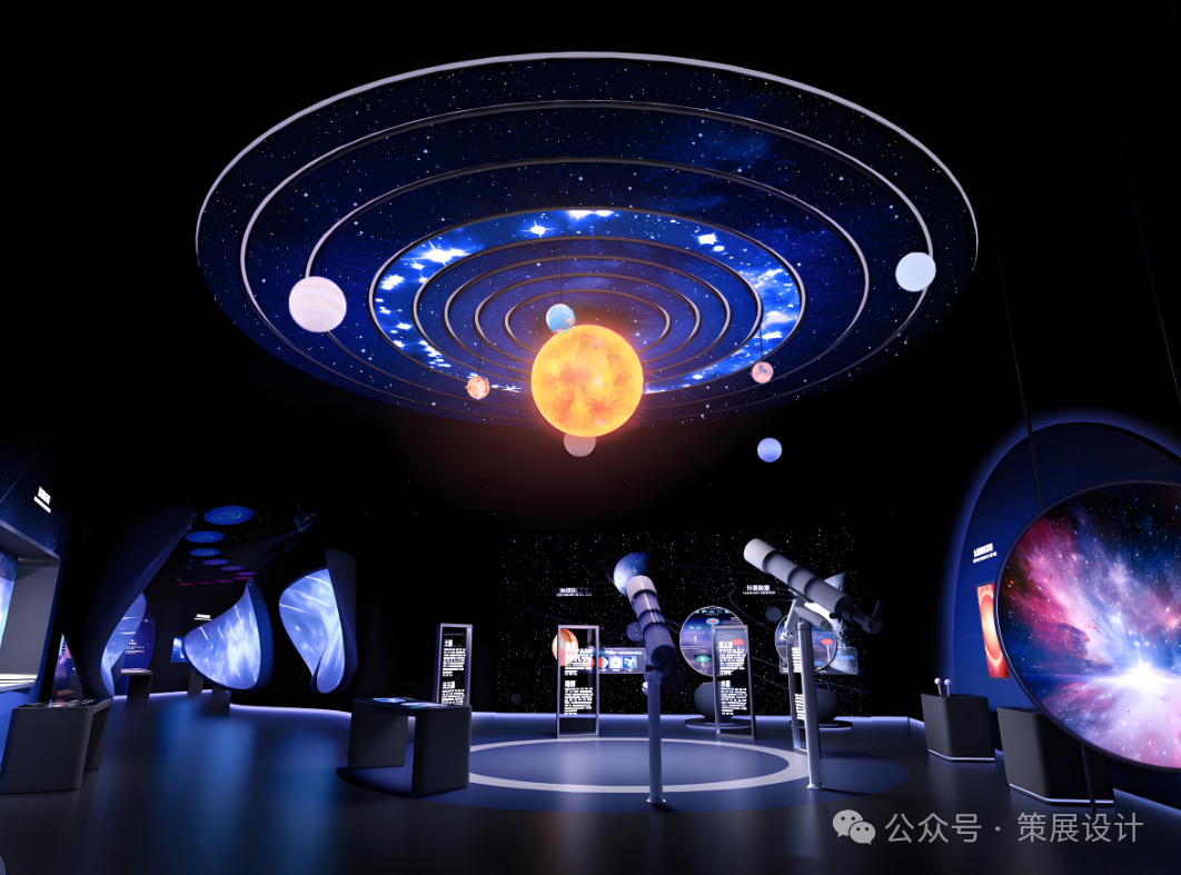 蔚蓝星球展区通过地球仪、地图和模型展示,让观众了解地球的构造和运动。遥望星辰展区则通过天文望远镜、星空投影和模型展示,让观众了解星座、行星和银河系的奥秘。飞向深空展区则通过模拟航天器、太空舱和互动体验,让观众了解人类太空探索的历程和成果。整个展厅通过叙事性的设计,让观众在探索中学习,在学习中感悟,激发观众对宇宙探索的热情和兴趣。
