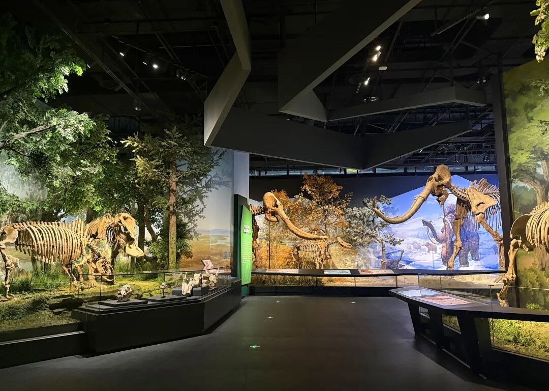 转身步入哺乳动物区,四季的景致随脚步流转:春日的嫩草从岩石缝隙中探出头,与化石群构成生命初醒的画卷;
