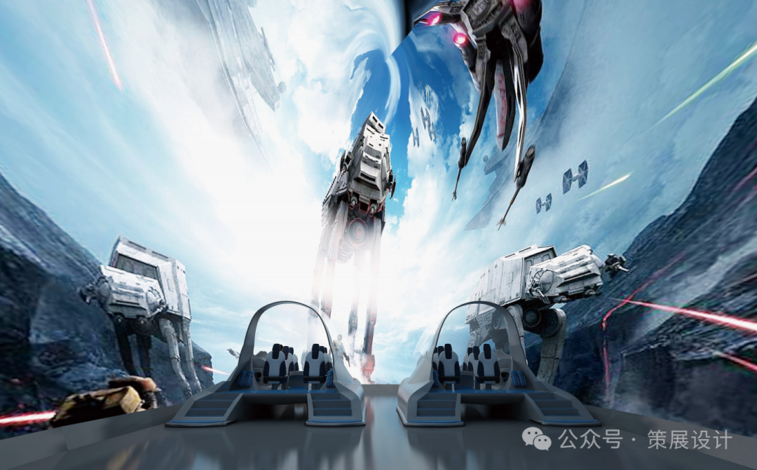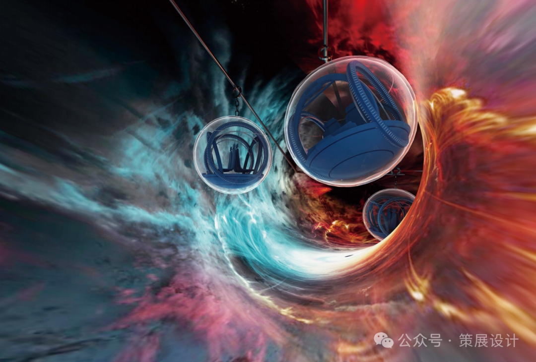 利用海底火山的喷射力,观众乘坐潜水球从海底世界飞向太空,完成从海洋体验区到天空体验区的转换,同时海洋世界的潜水球也会被转换为太空舱。