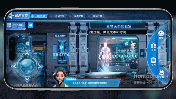 巨幕影院 一 键切换元宇宙 沉浸 游戏 空间 ,团队综合运用AI+三维实时渲染+线上线下多线程交互,打造 超越时空的 多人 同步游玩 体验,引领市民身临其境体验未来之城的尖端技术与高效生活。