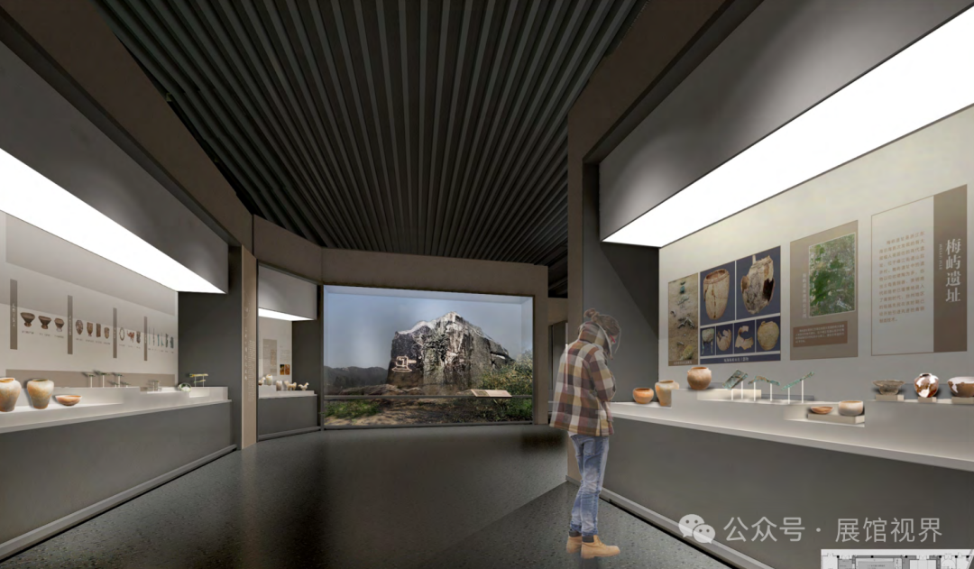 在展示区域的空间设计上,借助错落有致的通柜,巧妙融合图文与实物,生动还原了灵山先民的生活场景,恰似一幅徐徐铺展的历史画卷,鲜活展现出新石器时代晚期台州沿海地区人们的日常生活风貌。