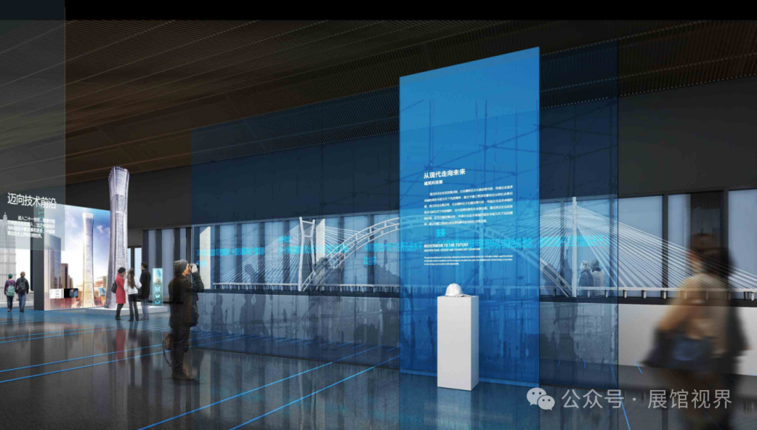 中国近代建筑科技在发展过程中呈现出独特的风貌。设计以吊装悬挂的设计,并结合实物模型配以投影的展现形式,为建筑的展示增添了新的维度与活力。这种独特的建筑展现形式与装配式建筑雏形的出现,共同构成了中国近代建筑科技的独特景观,为参观者展现了中国建筑在近代时期的创新与探索,使人们能够更加直观地感受到中国建筑科技的发展脉络与历史底蕴。