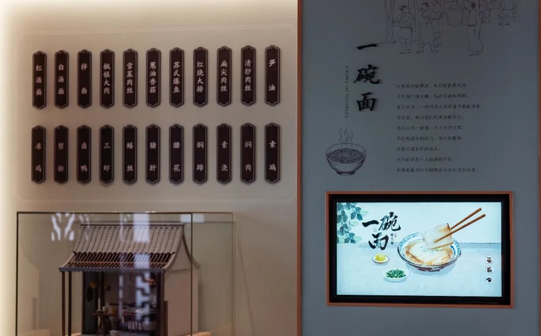 “飨三餐”展厅以“一碗面”“一杯茶”“一块糕”为线索,诠释苏州“不时不食”的饮食传统。将展出乔麦《姑苏24食景图》、骆驼担等特色展品。