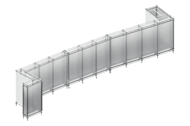 △脚手架装置,靠展厅侧包裹白色钢板作为展板,
