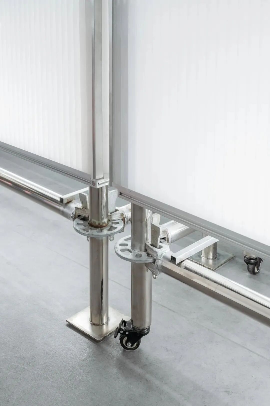 △脚手架装置作为展厅边界,可挪动形成运货口