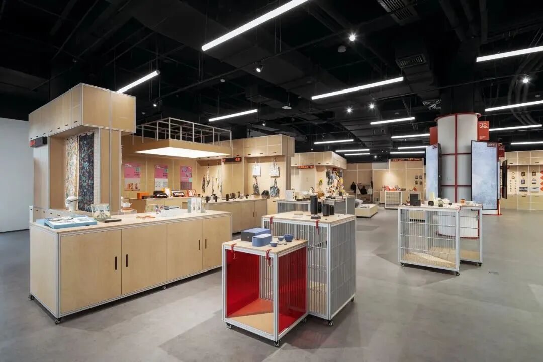 空间分隔界面展览化:在馆内各种过道空间的墙面上布置了大量形态各异的橱窗、洞口、洞洞挂板,赋予过道空间展览属性,使其成为免费展厅,对于参观者是一大福利,也为博物馆带来了商家品牌入驻橱窗的创收业务。