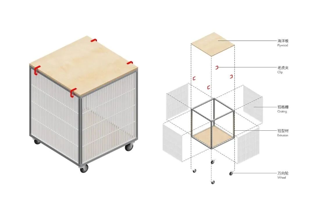 一方面满足了灵活布展和展品运输的使用需求,一方面在紧张的预算和工期下,现场施工与工厂加工同步进行大大节省了时间,也因工业化零件可控度高,使空间品质更有保障,这也与红点设计奖作为工业设计产品奖的特点相契合。