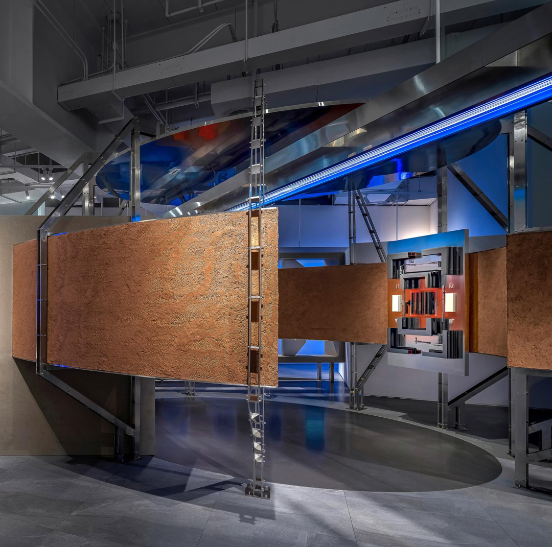 为了改变,我们忽视自然,为了延续,我们回望自然,科技推动的居住的迭代,最终、以人与自然融合作为回归,一块红土装置里的微量元素,却是诱发变化的关键,解析、转译它蓝色的能量链接起源与未来。