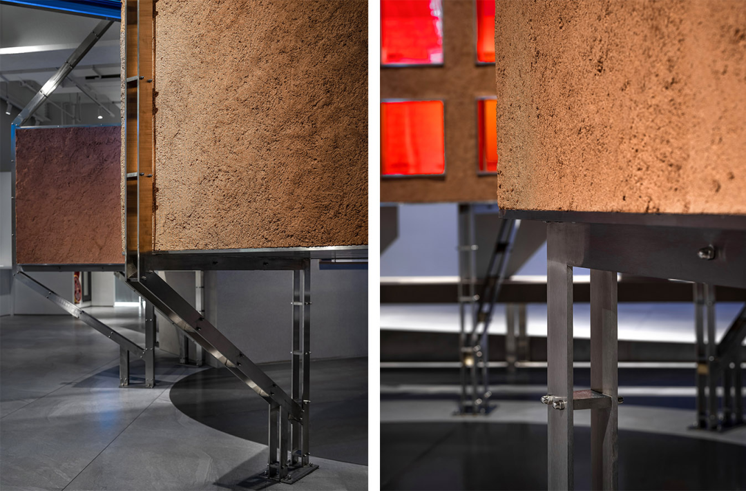 土——大自然的低能耗建筑材料,在古人的智慧下筑造了当时人与自然平衡。如今,它是诱发整个装置运作的微量元素,在科技装置的加持下,自然之土转变为科技之土,成为混凝土城市的进行迭代的种子。