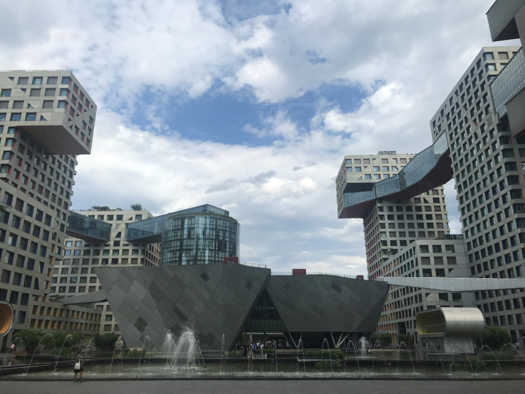展厅地址位于北京当代MOMA商务中心的首层,该建筑原为上世纪50年代建造的厂房,后于2000年根据北京市社会经济发展规划的实施和都市工业布局调整的要求实行环保搬迁,并将建筑改为办公用途,同时在首层预留6.7米的层高做灵活使用。